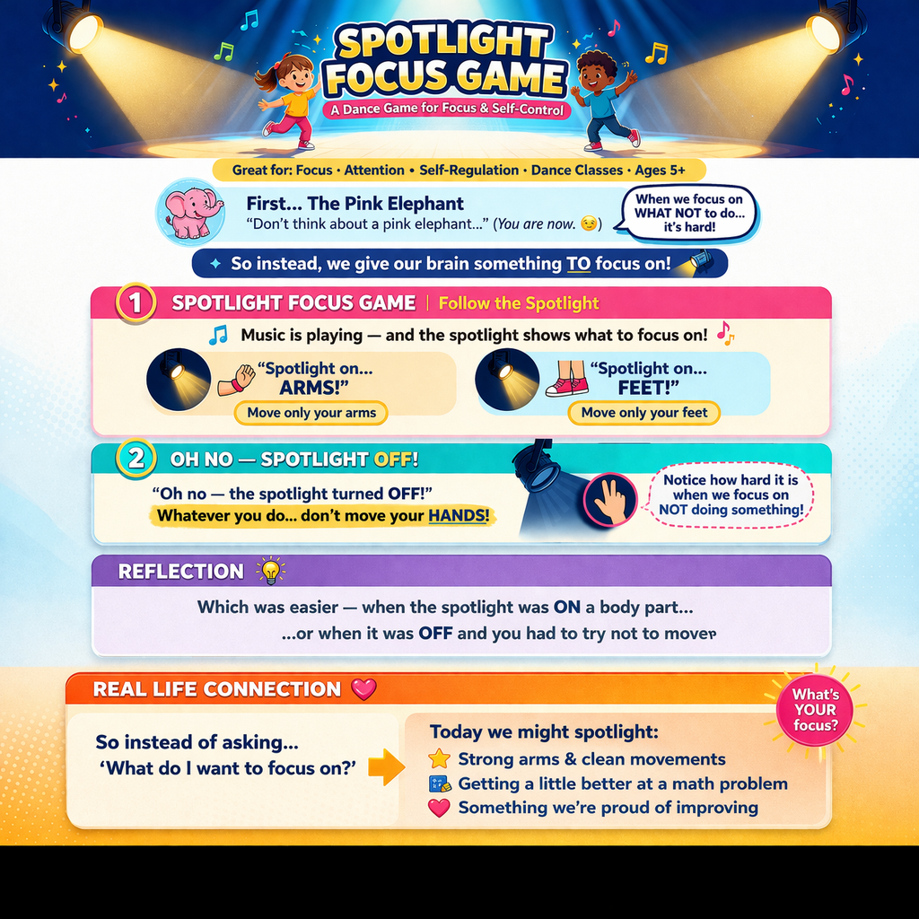These types of games are also part of The Secret Dance Technique online classes for kids and teens—where movement is used to build confidence, focus, and life skills. Learn more about these classes here.